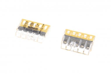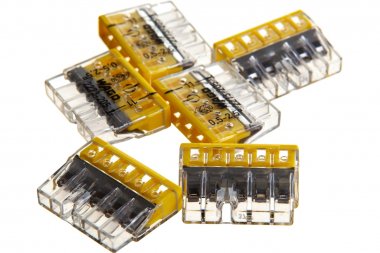 Изделие используется в распределительной коробке и позволяет присоединить одновременно 5 проводов. Клемма изготовлена из пластика, она имеет плоско-пружинный зажим.