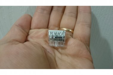 Изделие состоит из пластикового корпуса, серой крышки и плоско-пружинного зажима. Клемма имеет пластиковый корпус для того, чтобы отслеживать ввод кабеля.