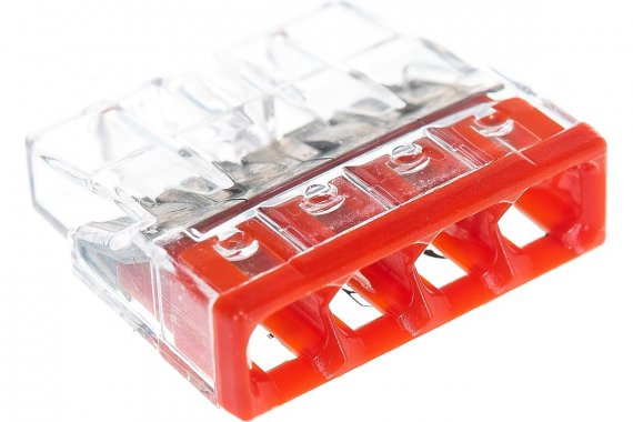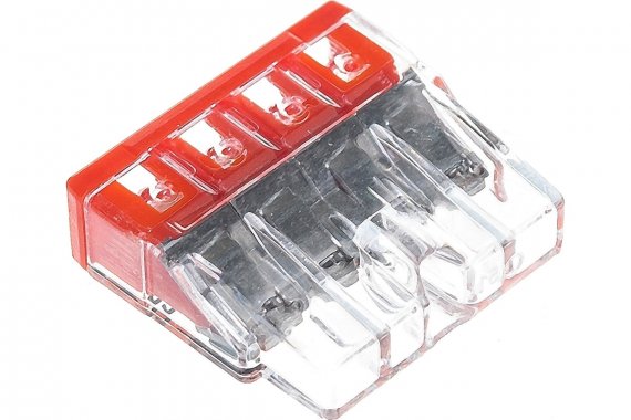 Соединительная клемма для быстрого монтажа 2273-244 4-х проводная, 0,5-2,5 кв.мм, 450В, 24А, с пастой, 100 шт 2687 предназначена для соединения медных или алюминиевых одножильных проводников.